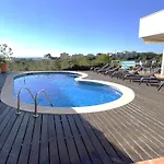 Villa Med A 2 Kilometros Andando De La Playa, Del Puerto De Aguadoc Y A 4 Del Centro De Sitges Muy Soleada Todo El Dia Capacidad Superior A 16 Personas No Requiere Coche dysponuje tarasem z widokiem na górę oraz basenem.